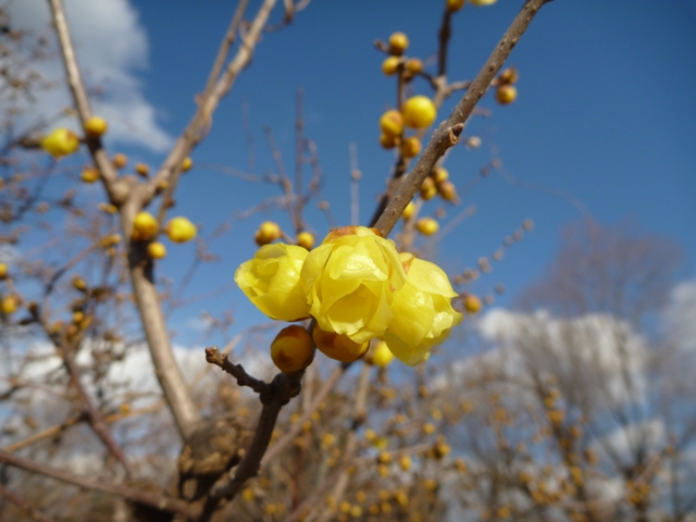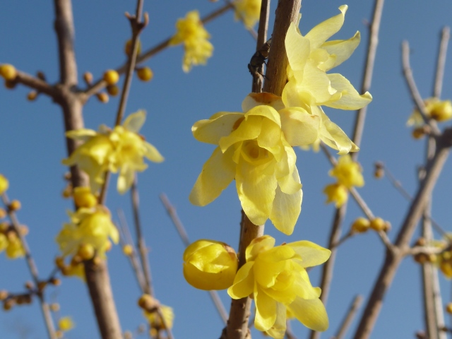 南エリアのいにしえの丘のロウバイが咲き始めました。全体的にはまだまだ蕾です。