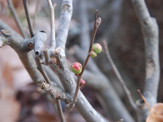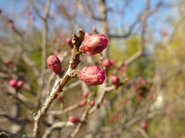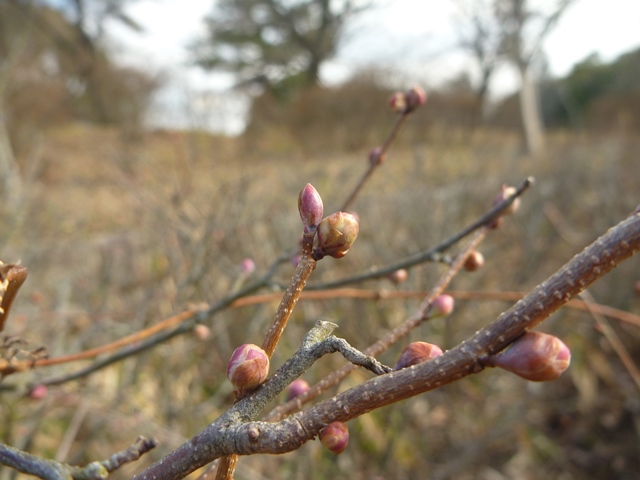 ウメの蕾も少しほころんできました。マンサクと同じく、昨年は2月4日に開花しています。