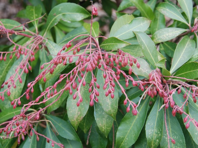 ピンク色のアセビの花芽です。昨年は2月7日に開花しています。