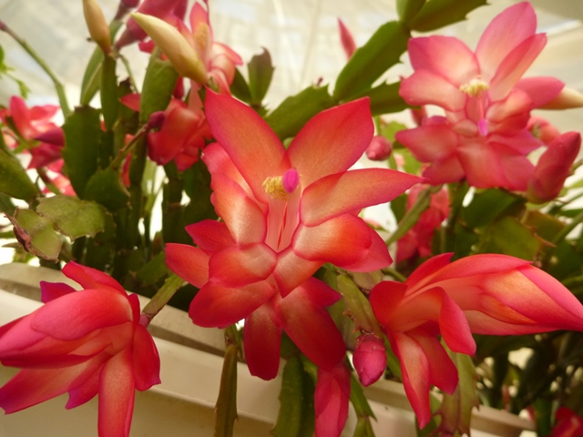 同じく公園館玄関ホールで展示中のシャコバサボテンです。たくさん花をつけています。