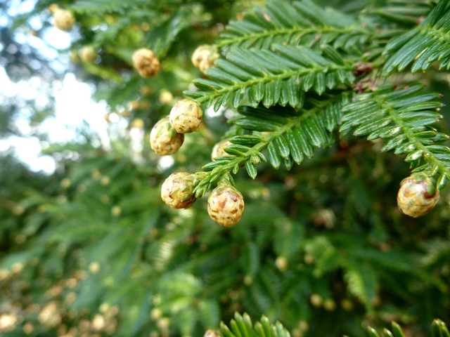 同じくバラ園脇のセンペルセコイアです。葉先に小さな丸い実をつけます。