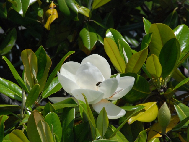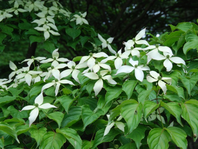 タイサンボクが白い大きな花を咲かせています。公園にある樹木の中でも最大級の花です。北エリアの駐車場近くにもありますが、タダオシ橋北詰にある樹が観察しやすいでしょう。