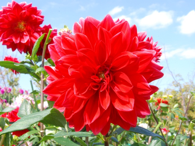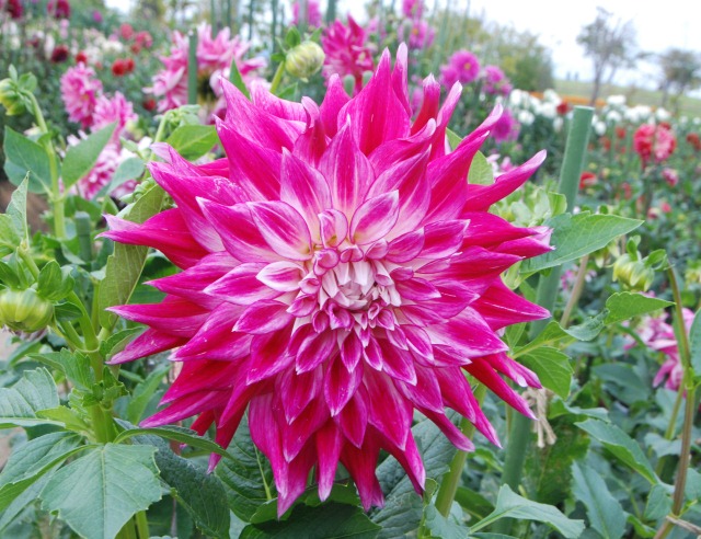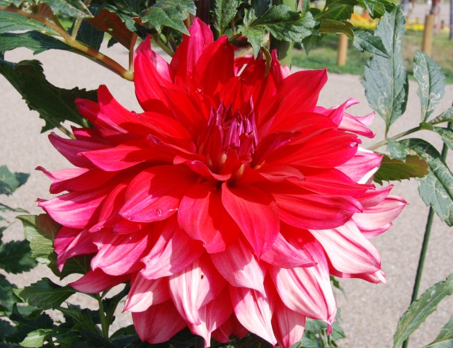 今日もダリア園は、朝早くからたくさんの人でした。手前のダリアは、奈良県で作出された「彩」という品種です。ダリアは背が高いので、この週末の台風が気がかりです。