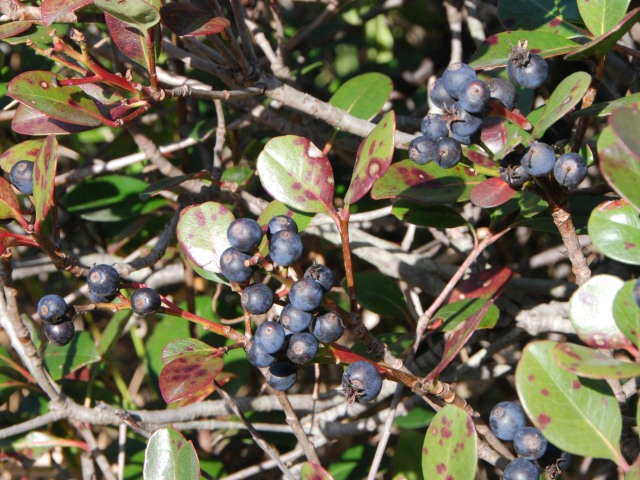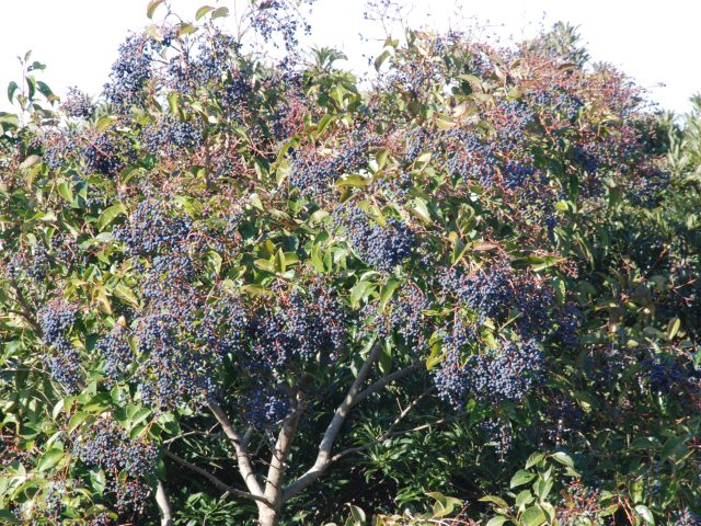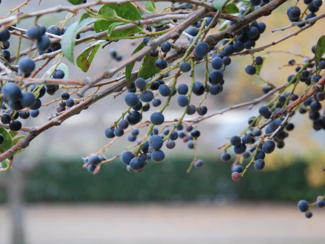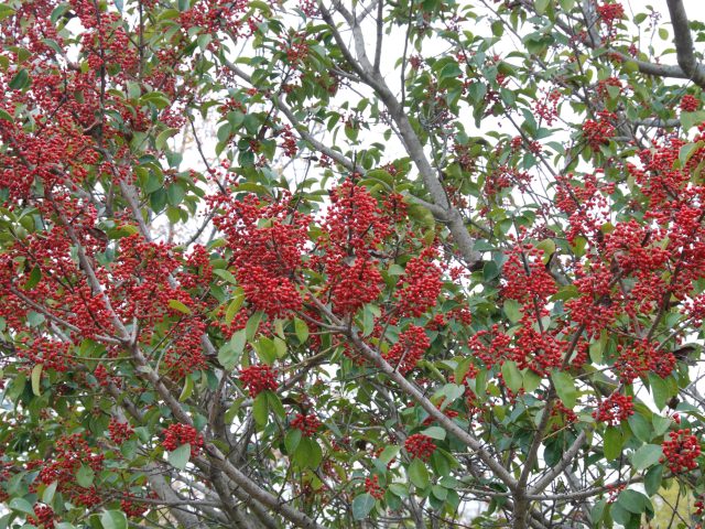 黒い実なのでわかりづらいですが、トウネズミモチが鈴なりの実をつけています。橋の上からもスロープからも、よく見えます。