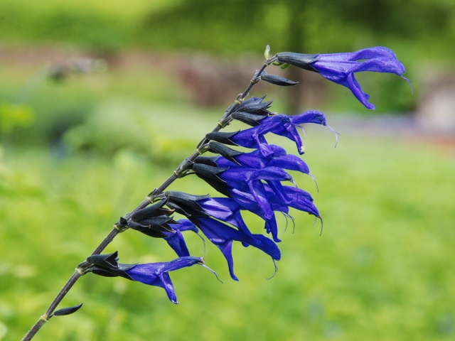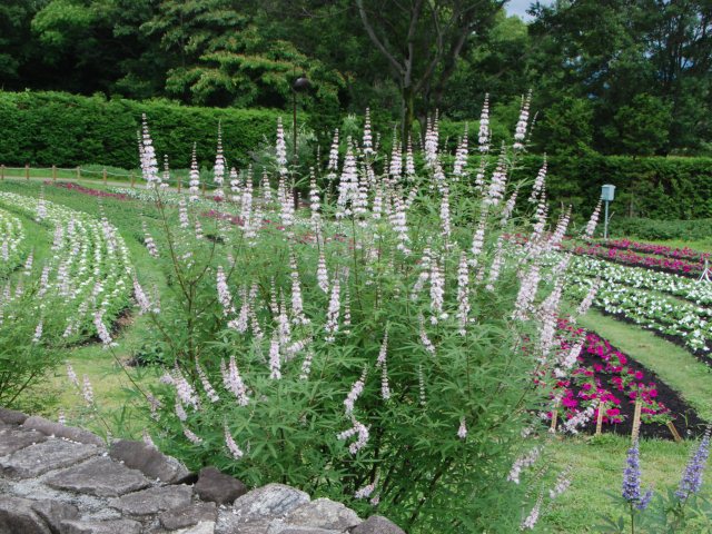 花の道で、サルビア・ガラニティカが咲いています。南米原産で、メドーセージとも呼ばれています。