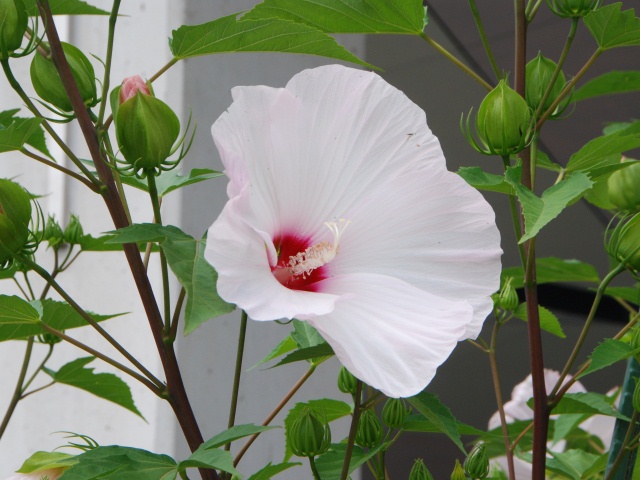 公園館前で、タイタンビカスの大きな花が咲き始めました。写真の花は、21cmありました。