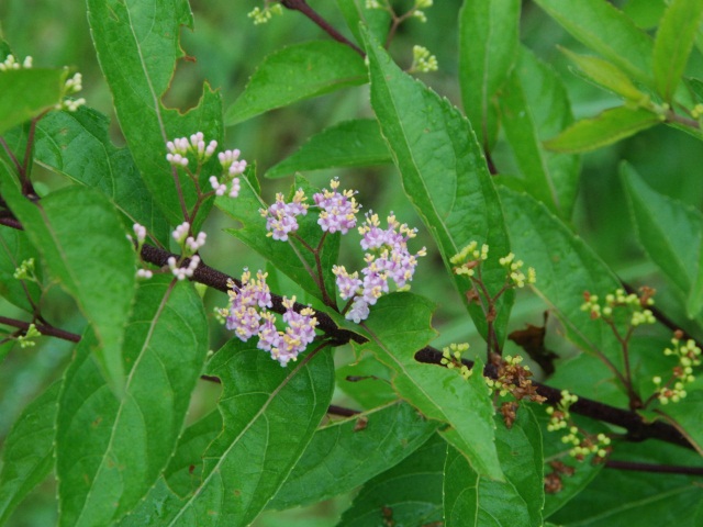 コムラサキ(紫式部)が咲き始めました。秋には紫色の実をたくさん付けます。