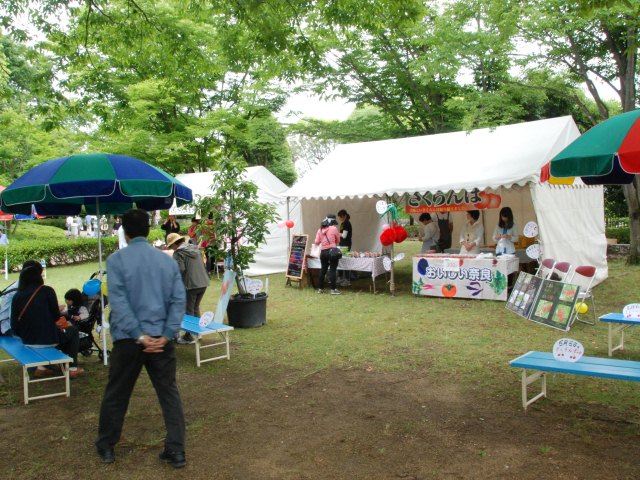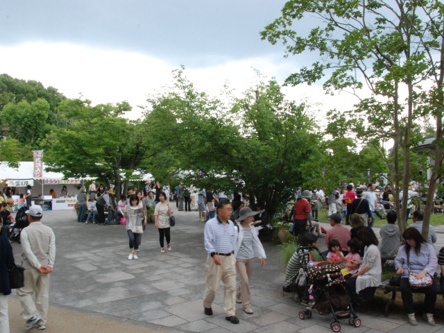 公園館前の賑わいです。右奥が音楽ステージ、左奥は「馬見グルメストリート」です。