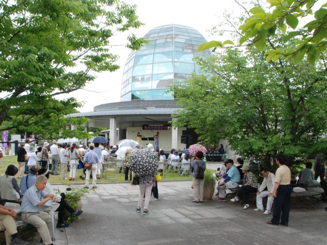 2時過ぎ頃から少し雨が降ってきましたが、音楽ステージの行われている公園館前は、人でいっぱいでした。