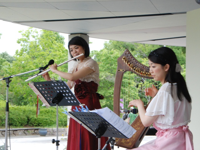 音楽ステージの様子です。今日は、クラッシク系のデュオで楽しんでもらいました。