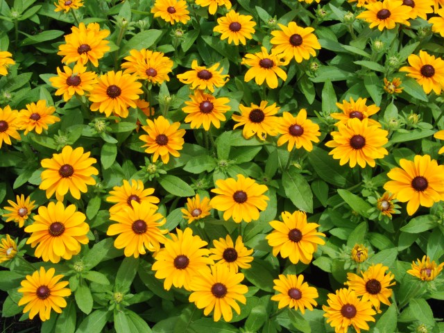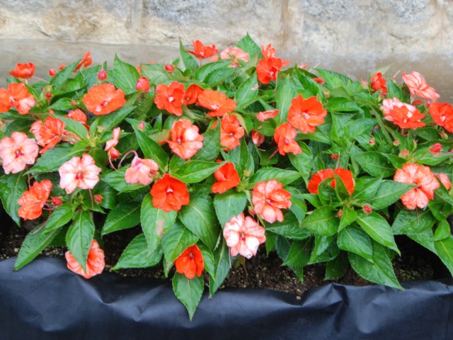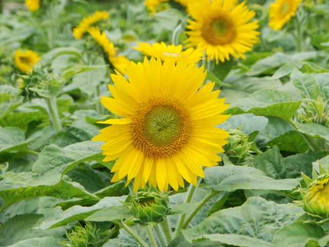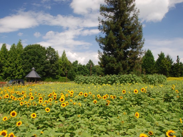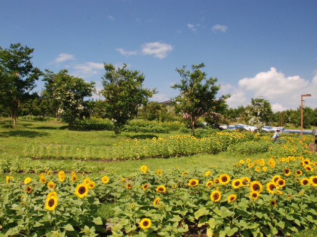 花の道のお花畑が見頃となってきました。ペンタスやペチュニア、ルドベキアなどが植えられています。ひまわりの開花はもう少し先です。