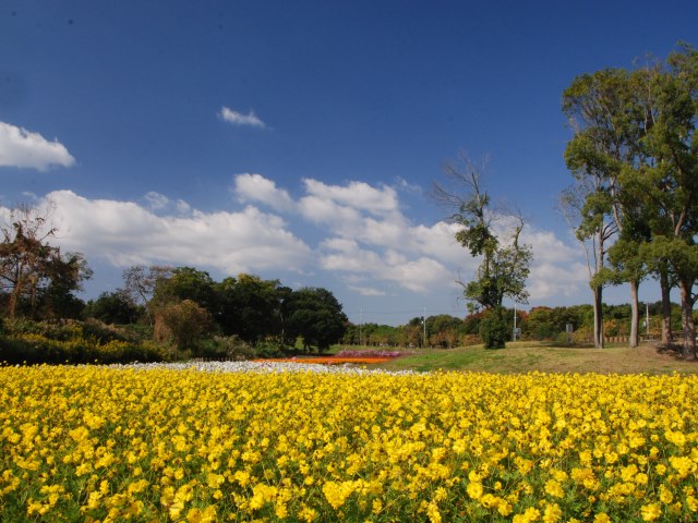 南エリアの「秋の花畑」では、キバナコスモスが満開です。
