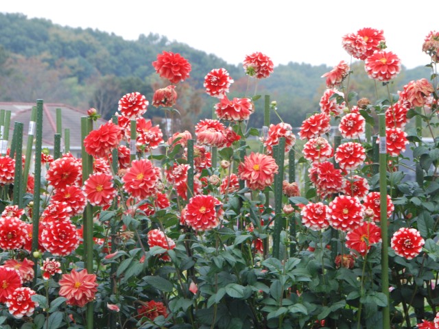「ダリア園」は散りかけの品種が多くなりましたが、まだ満開の品種もあります。写真は祝盃です。