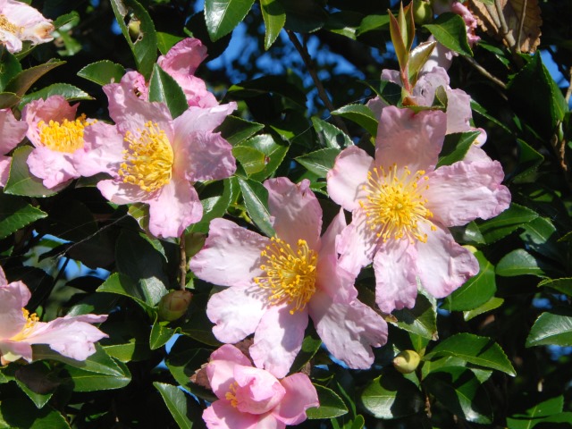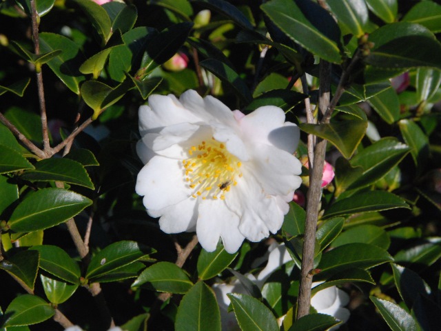 園内各地でサザンカが咲いています。今年は例年より少し早い、10月下旬より咲き始めました。