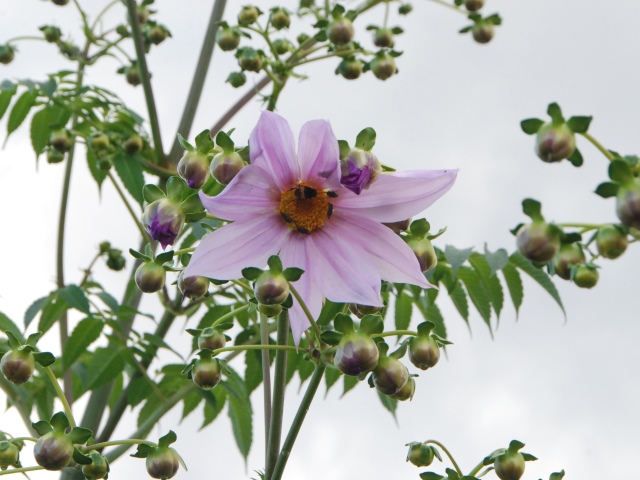 「ダリア園」で咲いているのは、宙(そら:写真)のほか数種となりました。皇帝ダリアは、2,3分咲きとなっています。