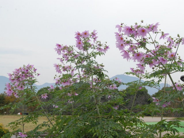 皇帝ダリアが咲き始めました。「花笑み橋」と「彩りの広場」にあります。