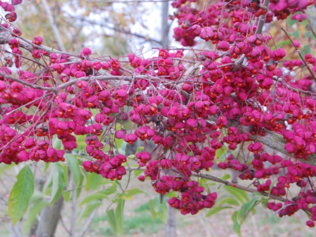 マユミ(真弓)も綺麗な赤い実をつけています。材が強いので、弓の材料として使われています。
