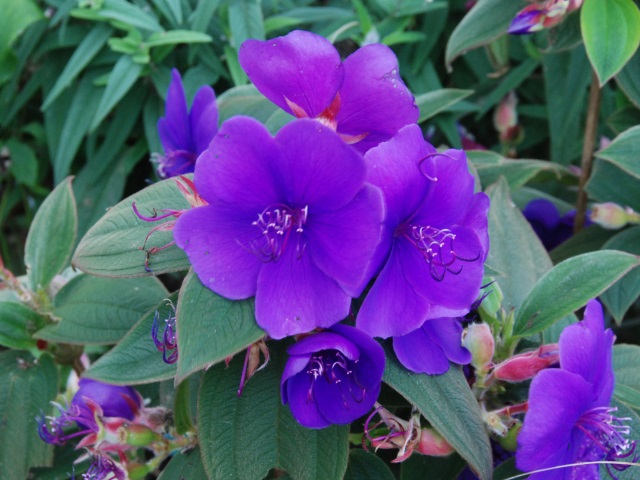 ボランティアの皆様が作ってくださったボーダー花壇で、シコンノボタン(紫紺野牡丹)が咲いています。
