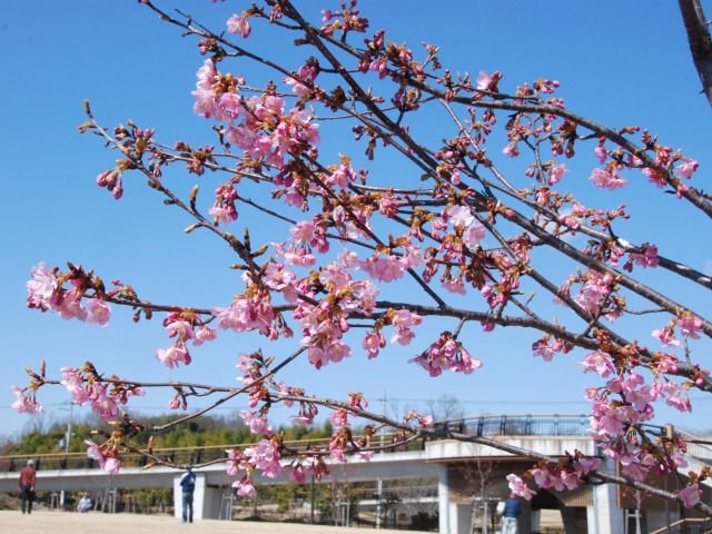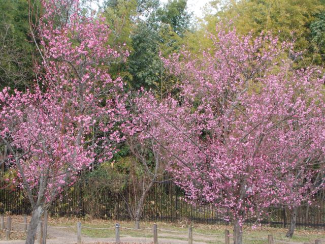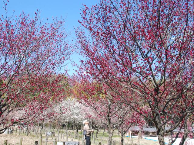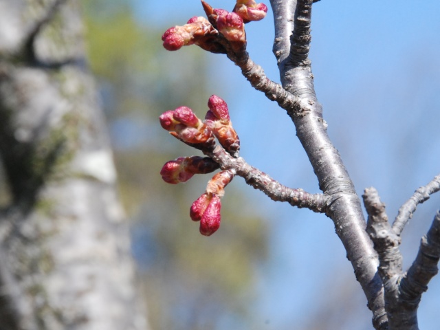 「睡蓮の池」近くで、紅色のアセビ(アケボノアセビ)が咲き始めました。