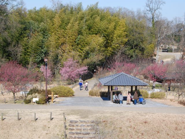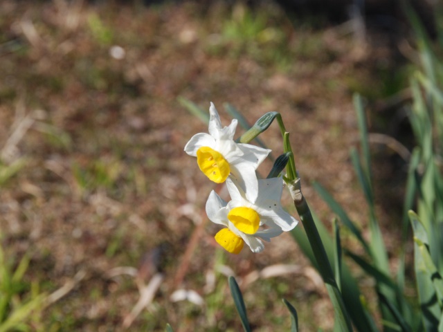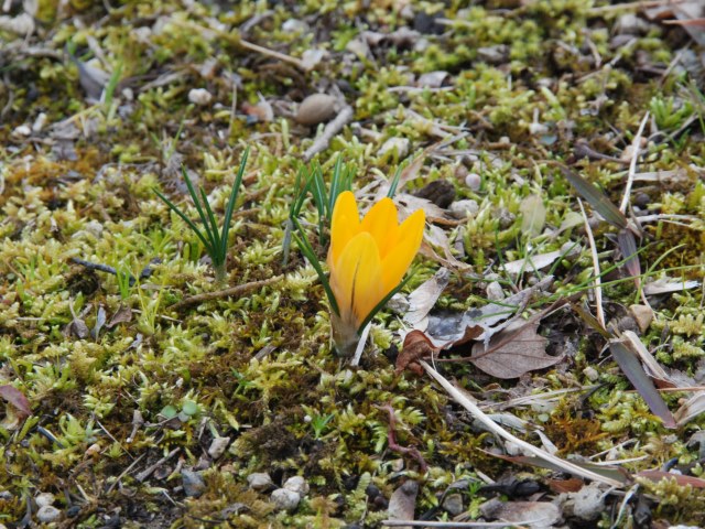 「水分広場」の四阿(あづまや)近くで、黄色いクロッカスが花盛りです。
