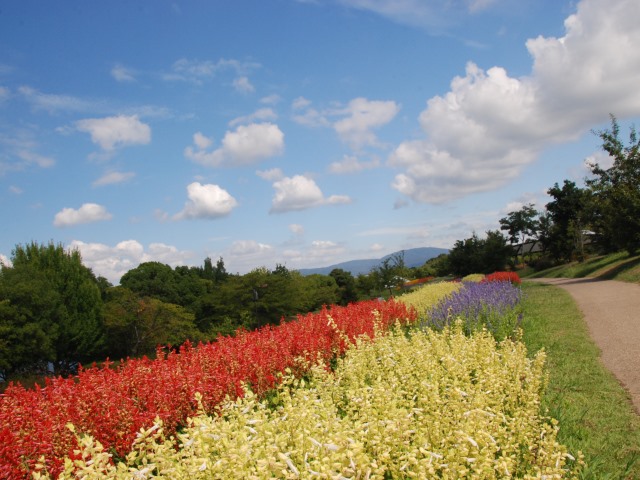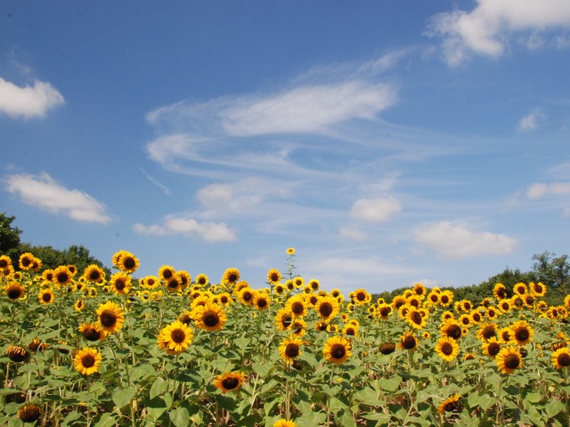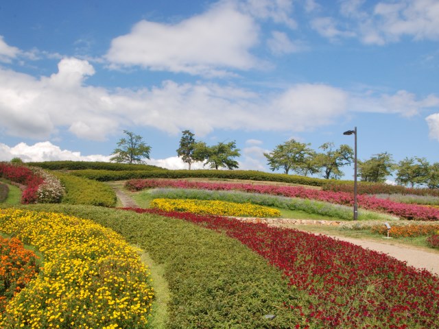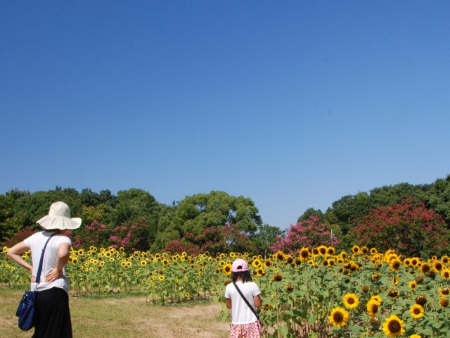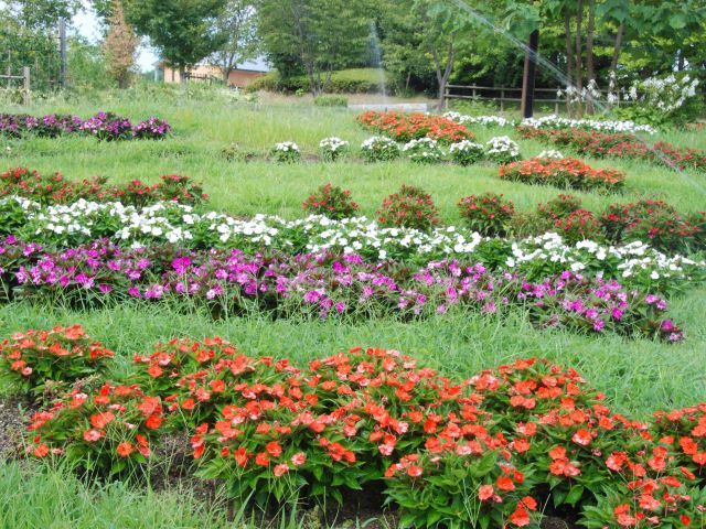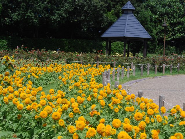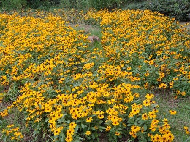 「花の道」では、現在、ルドベキア(写真)やペチュニア、ニューギニアインパチェンスなどが咲いています。ヒマワリの後には、秋に向けてコスモスを植え付けます。