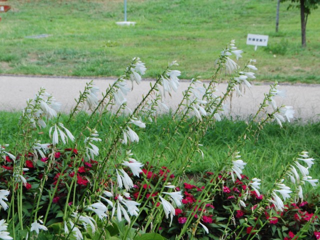 「陽だまり広場」近くの「野草園」で、ナツズイセン(リコリス・スクアミゲラ)が咲いています。ヒガンバナと同じように、花が先に咲いて、その後に葉が出てきます。