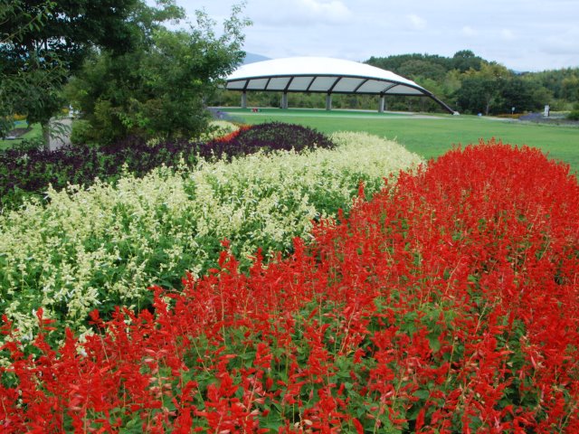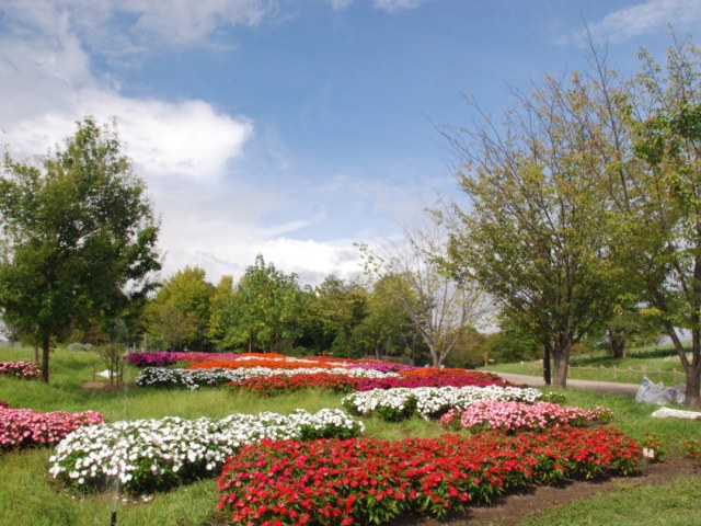 コスモスも3分咲きぐらいになりました。「芝生の丘」「花の道」「カリヨンの丘」などにあります。見頃はダリア同様、馬見フラワーフェスタ(10月8日~10月23日)の頃からです。