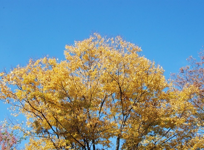 ケヤキの紅葉です。先日紹介したケヤキは赤茶色く紅葉していましたが、写真のように黄色く紅葉するものもあります。