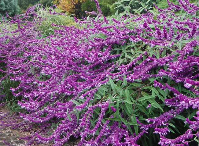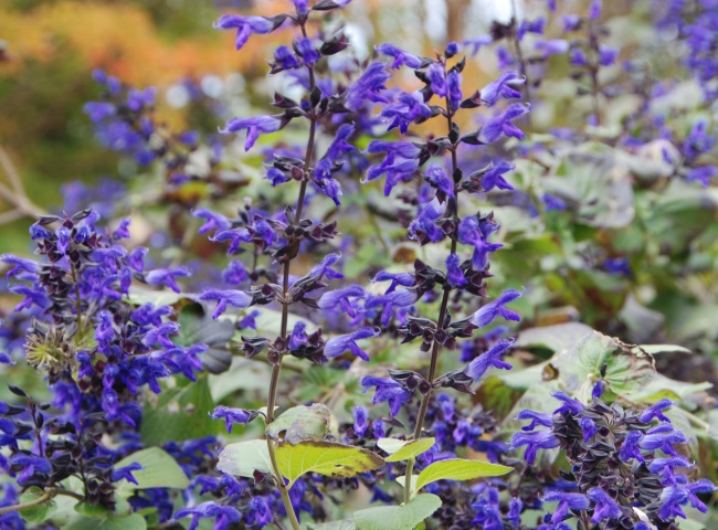 「花の道」では宿根サルビア類の見頃が続いています。写真はパープルマジェスティです。