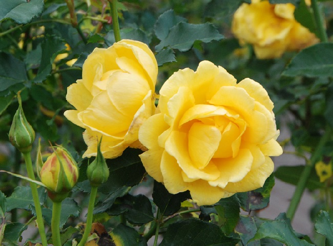「バラ園」では、まだ咲いている品種があります。写真は「ゴールドバニー」という品種です。