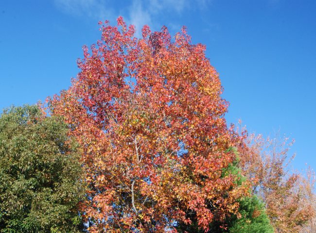 紅葉としては少し渋くなりますが、落ち着いた色合いのラクウショウも綺麗です。