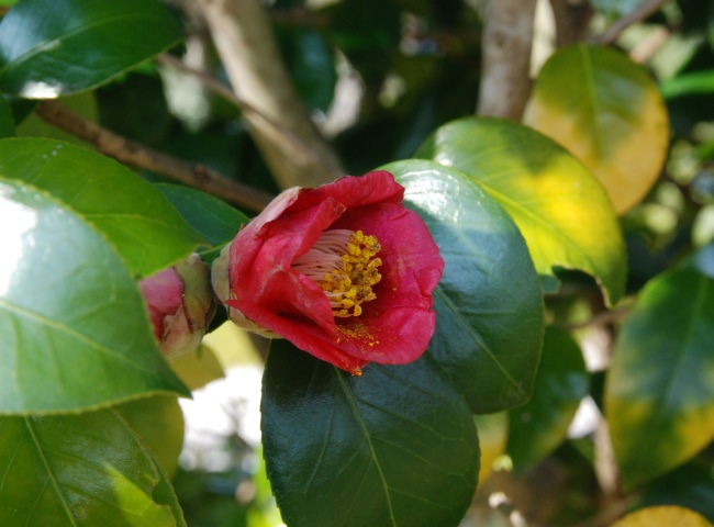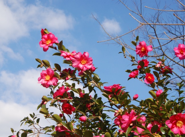 園内の花が少ないこの時期、目立っているのがサザンカの花です。花は白色、桃色、濃桃色、そして一重咲、八重咲と変化に富んでいます。