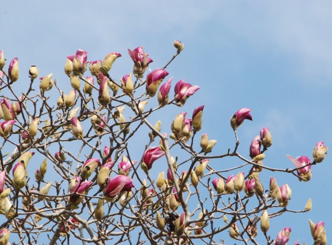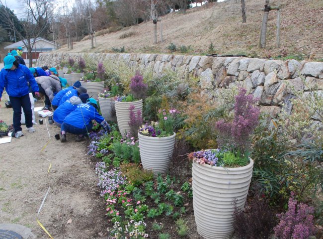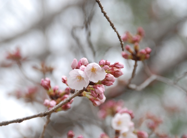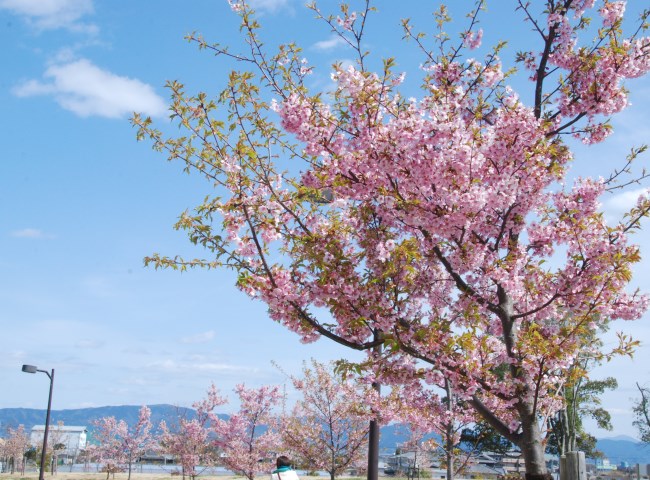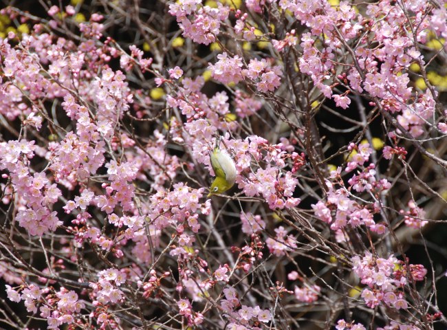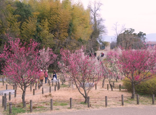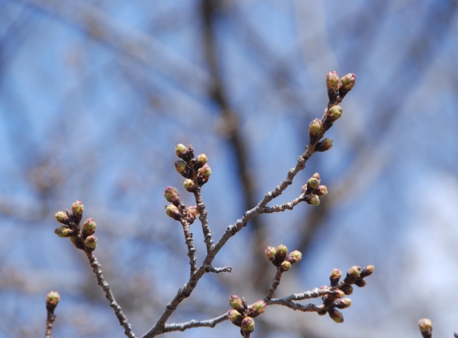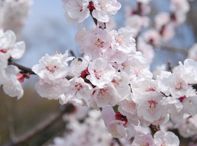「ハナモモの丘」でアンズの花が咲いていました。主役のハナモモもだいぶつぼみが膨らんでいて、もう少しで開花です。