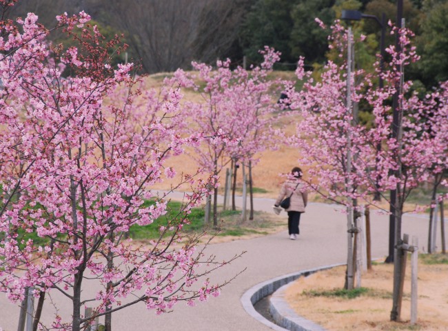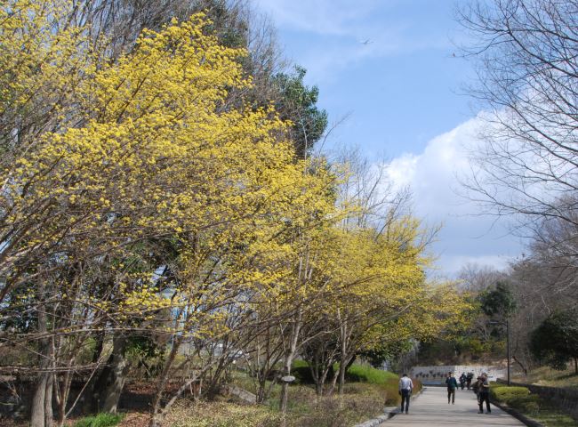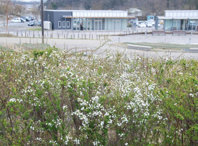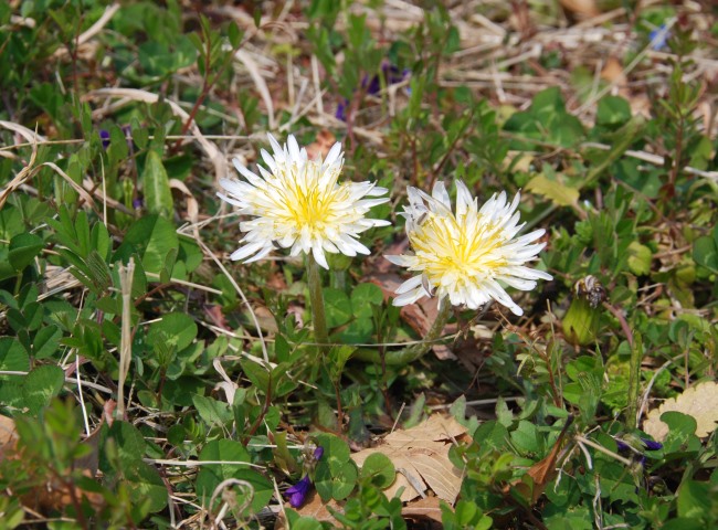 シロバナタンポポ(写真)も咲いていました。「ハナモモの丘」では、カンサイタンポポやオオイヌノフグリなどもたくさん咲いています。