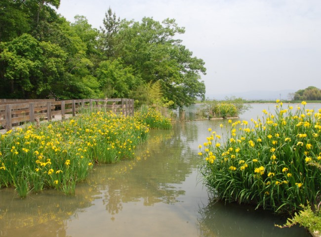「下池」でキショウブが満開です。「菖蒲園」では、早咲き品種のつぼみがあがってきました。