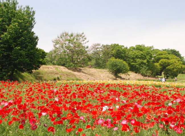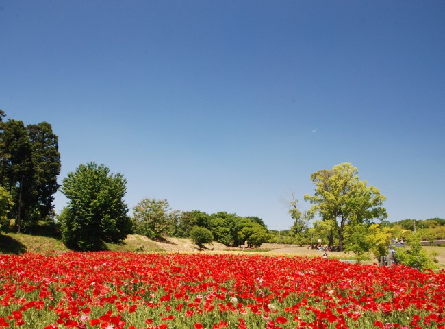 「春まちの丘」近くのお花畑で、ポピー類が見頃となっています。写真はヒナゲシ(虞美人草)です。