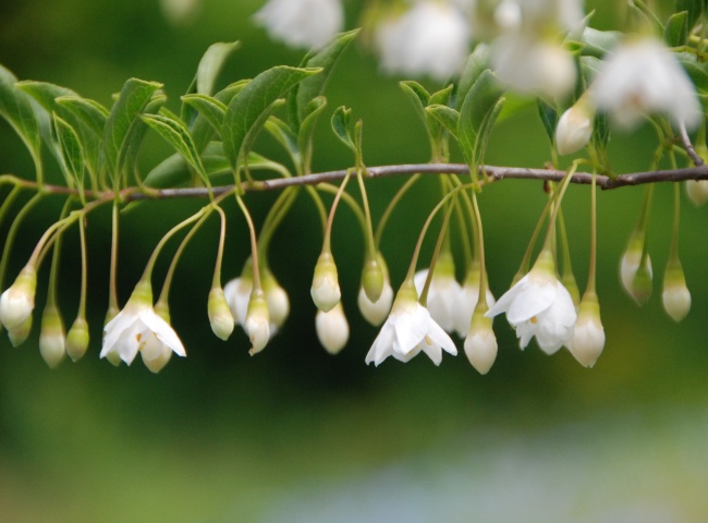園内各地でエゴノキが、白いかわいい花を咲かせています。まとまってあるのは「流れのある坂道」です。