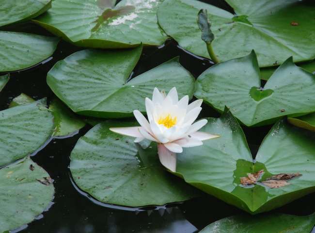 「睡蓮の池」でスイレンも咲き始めました。近くのアジサイの開花はもう少し先です。
