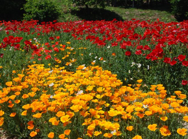 上の写真はアイスランドポピー(白・黄・橙)です。左の写真はヒナゲシ(赤)です。