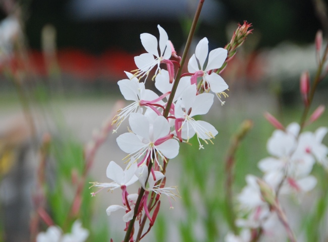 「花の道」でガウラ(白蝶草)が咲き始めました。白い蝶の様な花が風にそよいでいます。