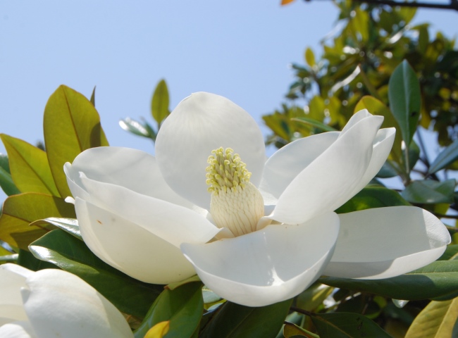 タイサンボク(泰山木)が大きな白い花を咲かせています。柑橘系の良い香りがします。