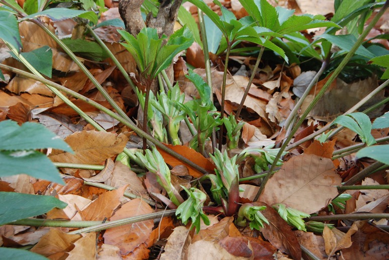 クリスマスローズも花芽が出てきました。