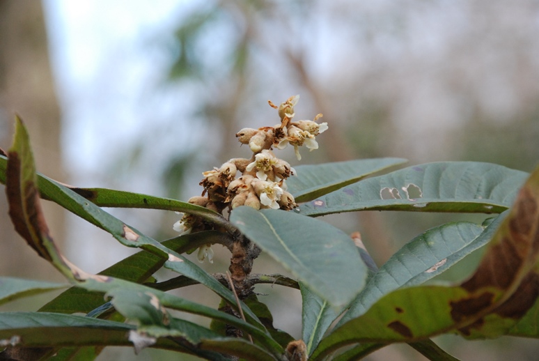 「トチノキ橋」近くでビワの花が咲いています。