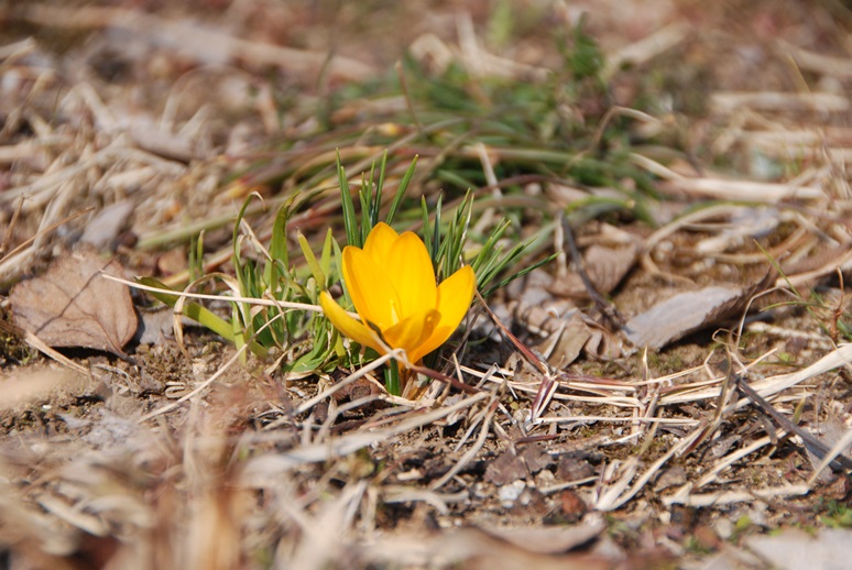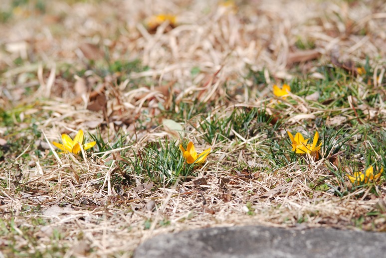 「水分広場」でクロッカスが咲き始めました。開花の始めは昨年とほぼ同時期です。