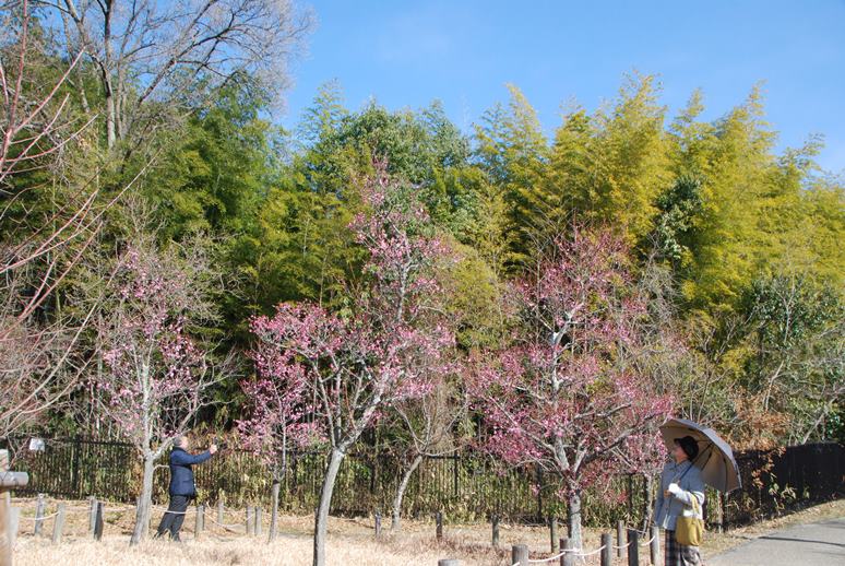 梅は「梅林」だけでなく、「ハナモモの丘(写真)」や「中央臨時駐車場」前でも咲いています。