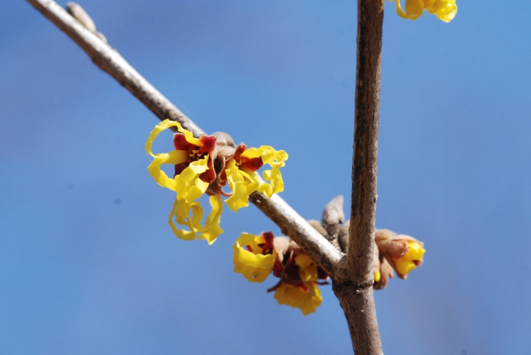 「水鳥と花の広場」のマンサクが咲き始めました。