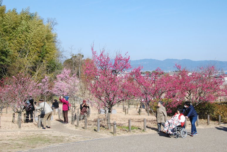 梅林は5分咲きになりました。今日は暖かかったので、大勢の人が訪れていました。見頃までもう少しです。