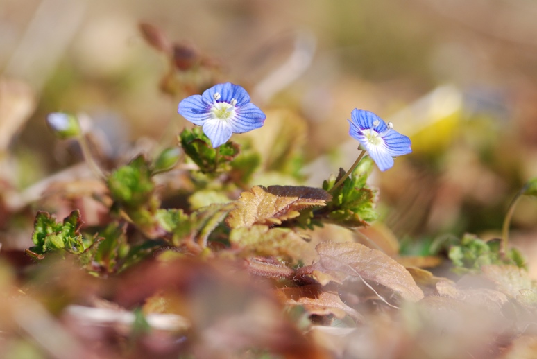 園内あちこちの草地で、オオイヌノフグリが咲いています。踏みつけてしまいそうな小さな花ですが、よく見ると綺麗です。