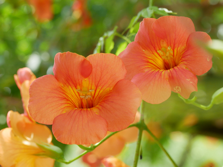 梅雨が明けたような暑さが急にやってきました。夏の季語となるノウゼンカズラが花盛りです。