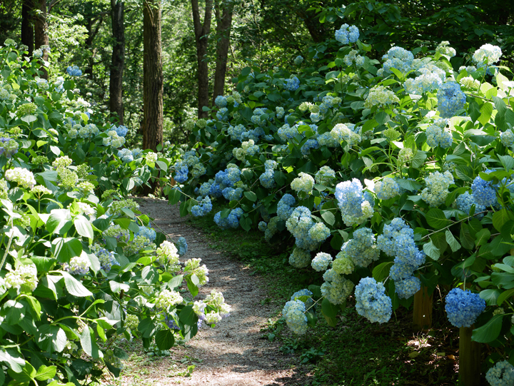 アジサイも見頃になっています。今日は日射しが強かったせいか、木陰に咲くあじさいの小径を楽しんでおられました。